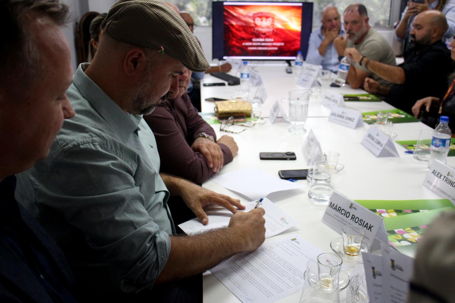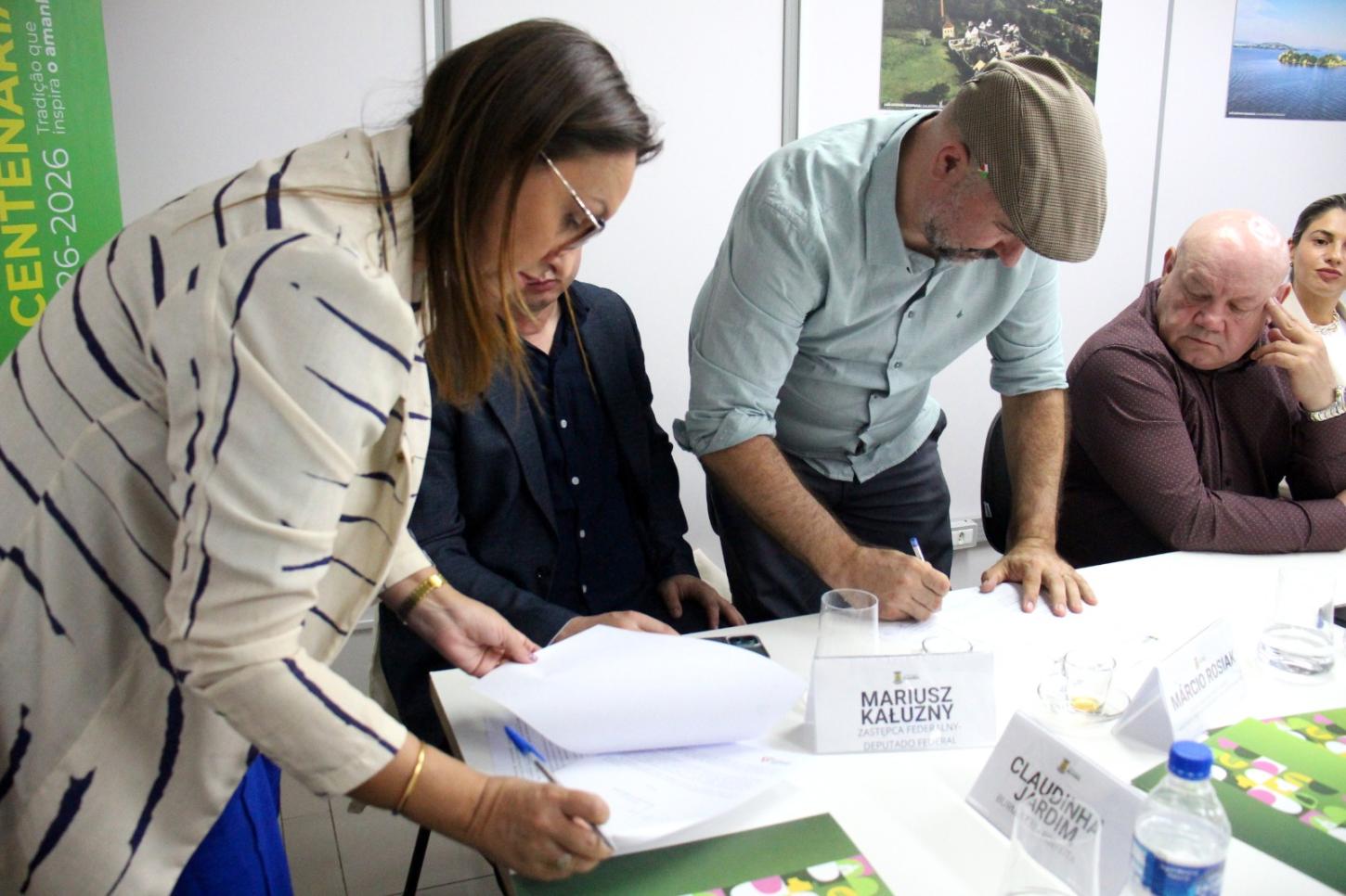 Um dos momentos centrais da visita foi a assinatura de uma carta de intenções entre a prefeitura de Guaíba e representantes da ANMPOL, com a presença da delegação polonesa.
