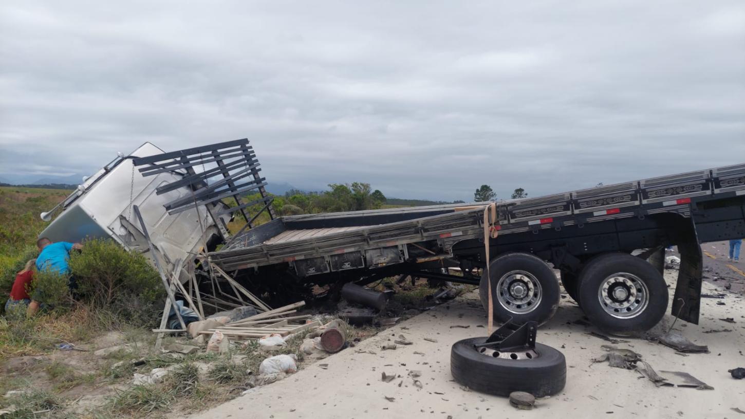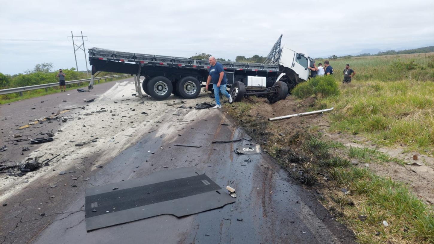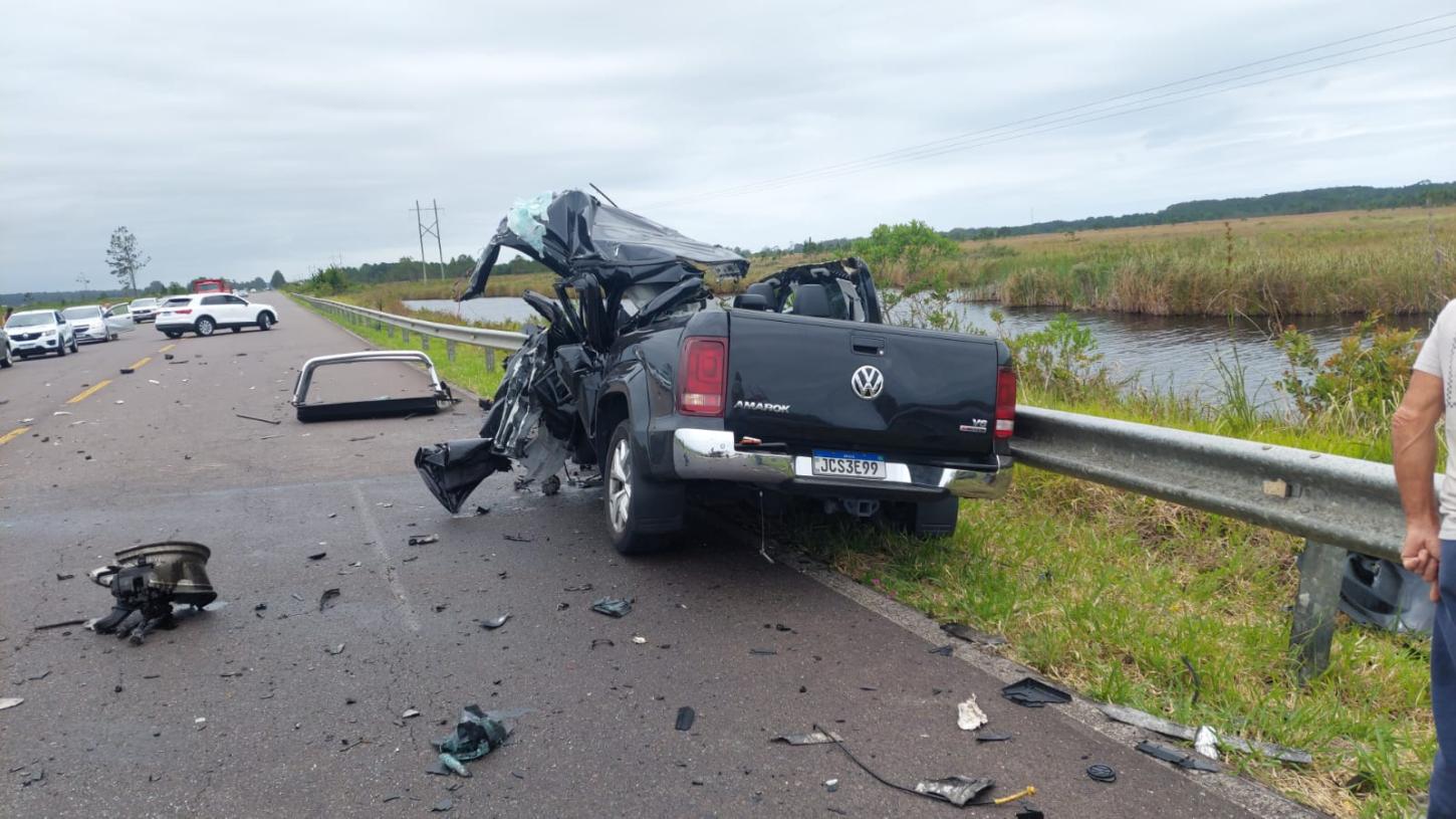 O choque violento envolveu uma caminhonete e um caminhão. Devido à força do impacto, a via foi imediatamente bloqueada em sua totalidade no local, gerando transtornos e congestionamento no Litoral Norte gaúcho.